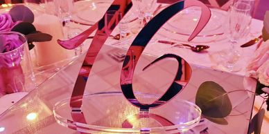 We can also acrylic create table numbers, drink stirrers, charger plates, and many more things out of lasered acrylic.