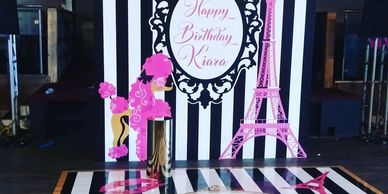 Backdrops are created with foamboard and wood framing that hides behind the panels. We overlap our prints to create a seamless look. We can create any size backdrop and can custom make them incorporating lasered acrylic and CNC foamboard.